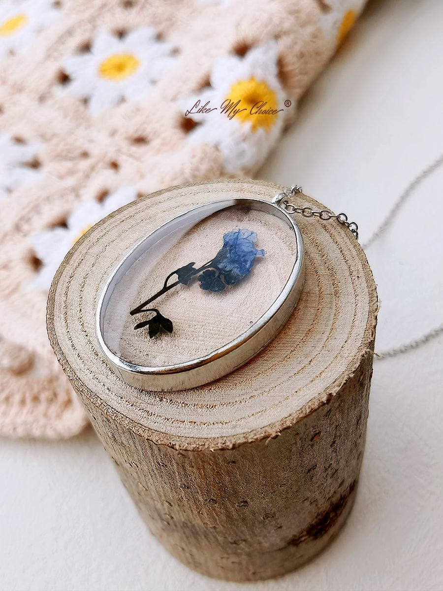 Pressed Flower Necklace - Forget Me Not Flower Oval