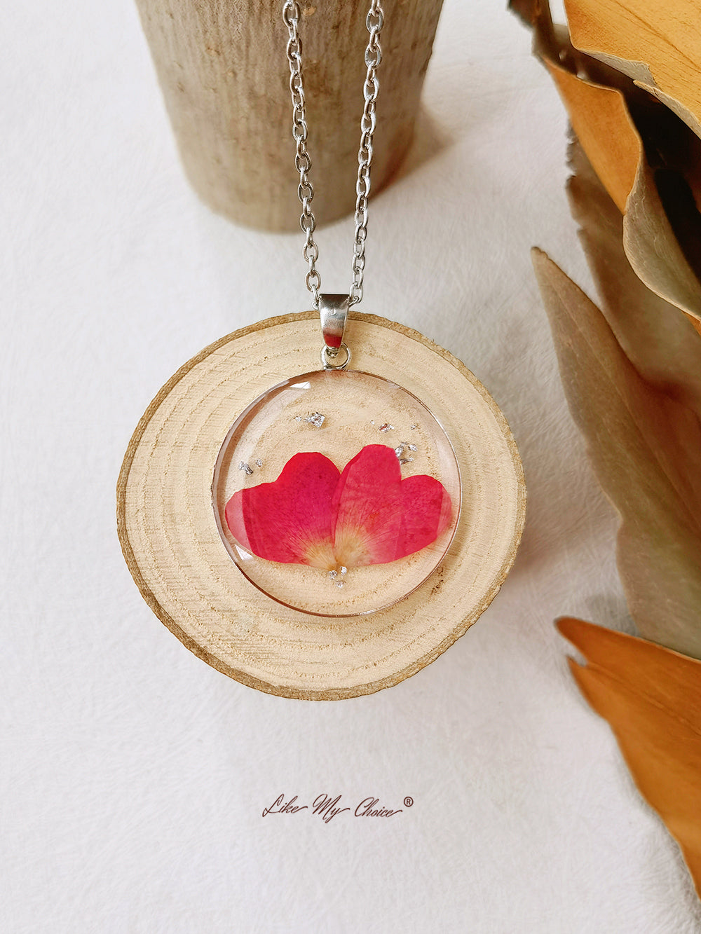 所有花朵都被小心翼翼地放置在手工倒入的树脂中,经过多个步骤,赋予其色彩丰富、自然的花园外观。这款优雅的吊坠将成为任何服装的引人注目的配饰。