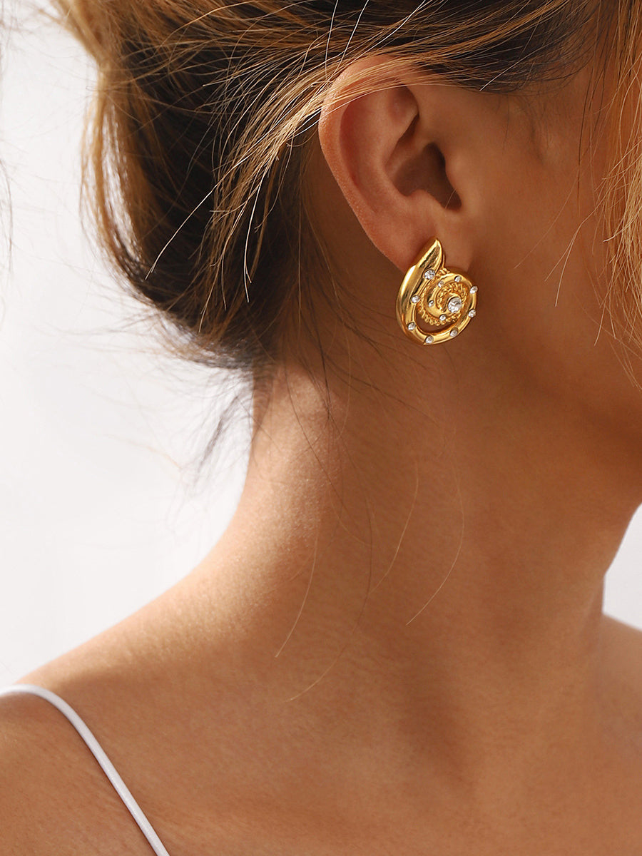 رفع مستوى أسلوب إكسسواراتك مع أقراط LikeMyChoice® Statement Conch Diamond Metal Stud. تتميز بتصميم حديث على شكل صدف دائري وألماس، ستضيف هذه الأقراط لمسة من الرقي والأناقة إلى أي زي.